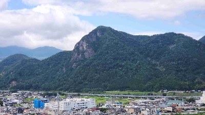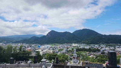 随昌院の上部にあるお墓からの見晴らし。伊豆の国市のシンボルである城山が一望できる。