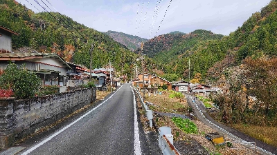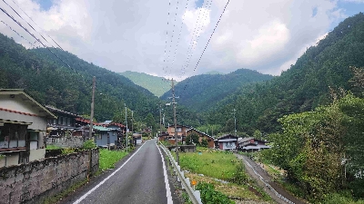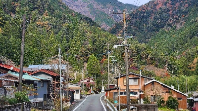 明神峡と山住峠に挟まれて、秘境中の秘境に位置する限界集落。最寄りの町は山住峠の向こう側にある水窪町(18km)なのに、住民はまだ数件(数十件?)。本当に時が止まったかのような場所。