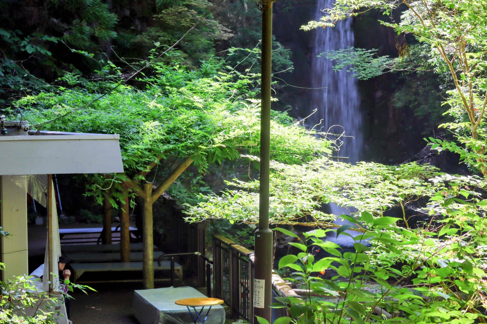 滝のすぐ側に「滝見茶屋」があり、ご主人が自宅から持ち運んだ七輪で温めてくれたおでん🍢や甘酒、ぜんざいを滝のマイナスイオンを浴びながら楽しむことが出来る。