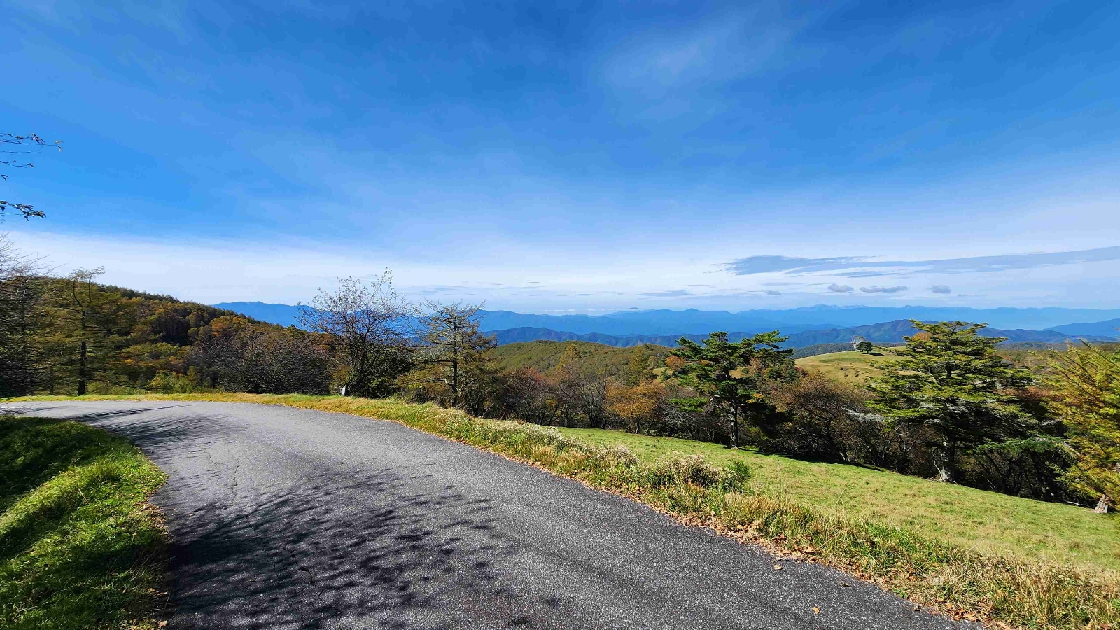 入笠山の斜面に広がる野原から、「貴婦人の丘」の後ろに中央アルプス全体に加え、御嶽山も綺麗に見渡すことができる。