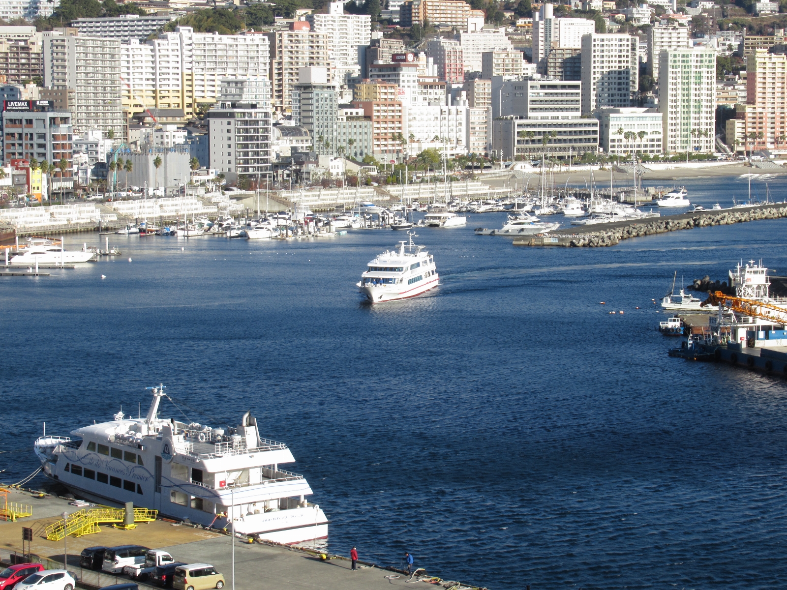 港湾の向こうにホテル群の斜面が見える熱海らしいポイント