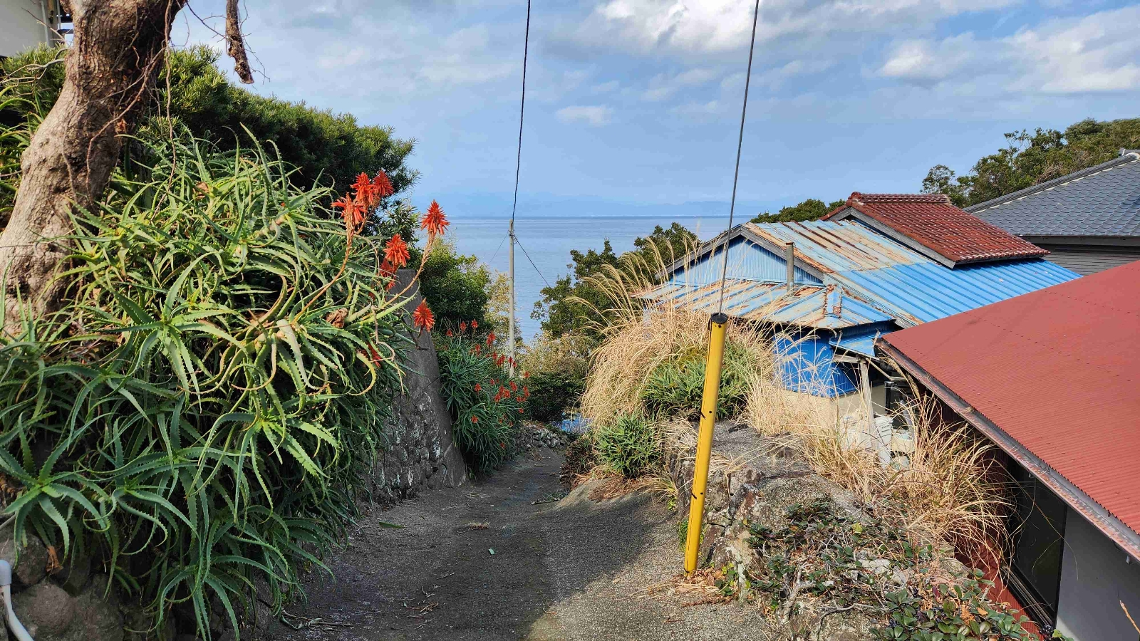 西伊豆海岸に良くある小さな港町。多くの集落は本線から下った行き止まりにあるが、ここは本線が集落の中を通っており寄り道しやすい。富士山を臨む立地にあり、瓦屋根となまこ壁が印象的。