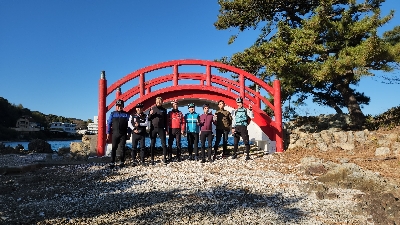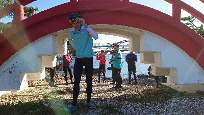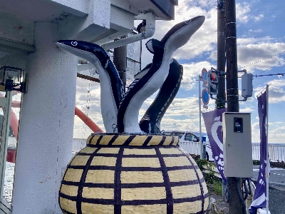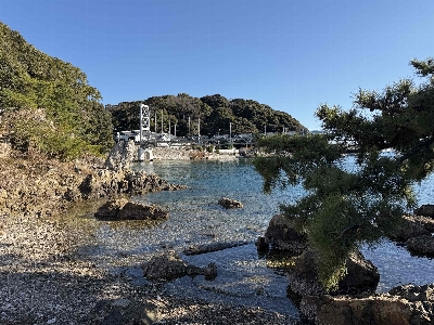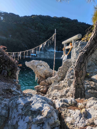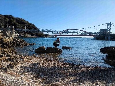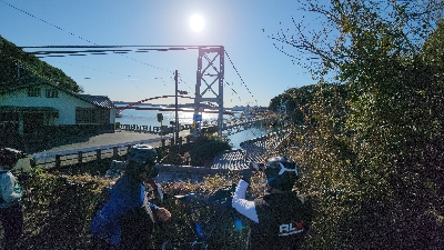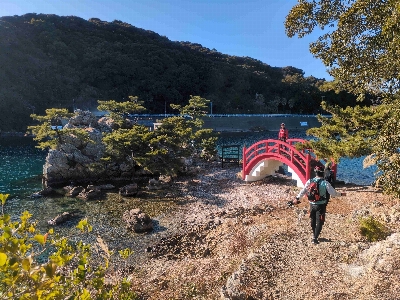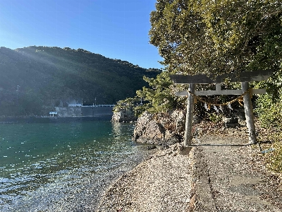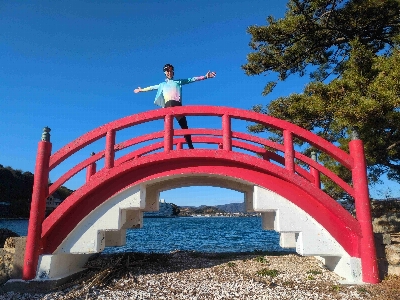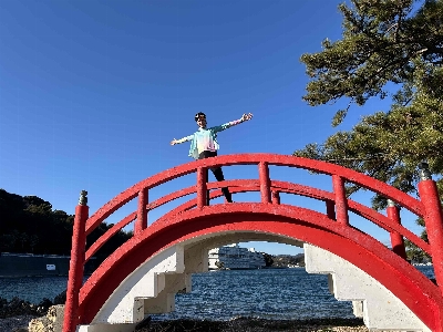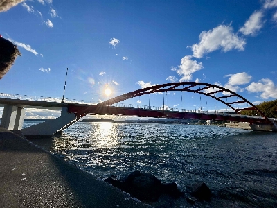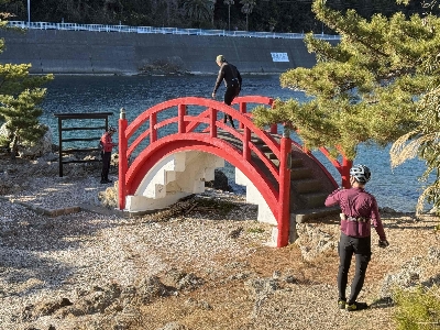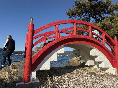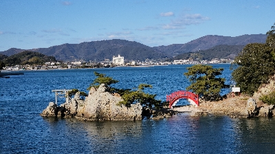 浜名湖のシンボルの一つ、瀬戸橋と目印になる猪鼻湖神社の赤い橋。