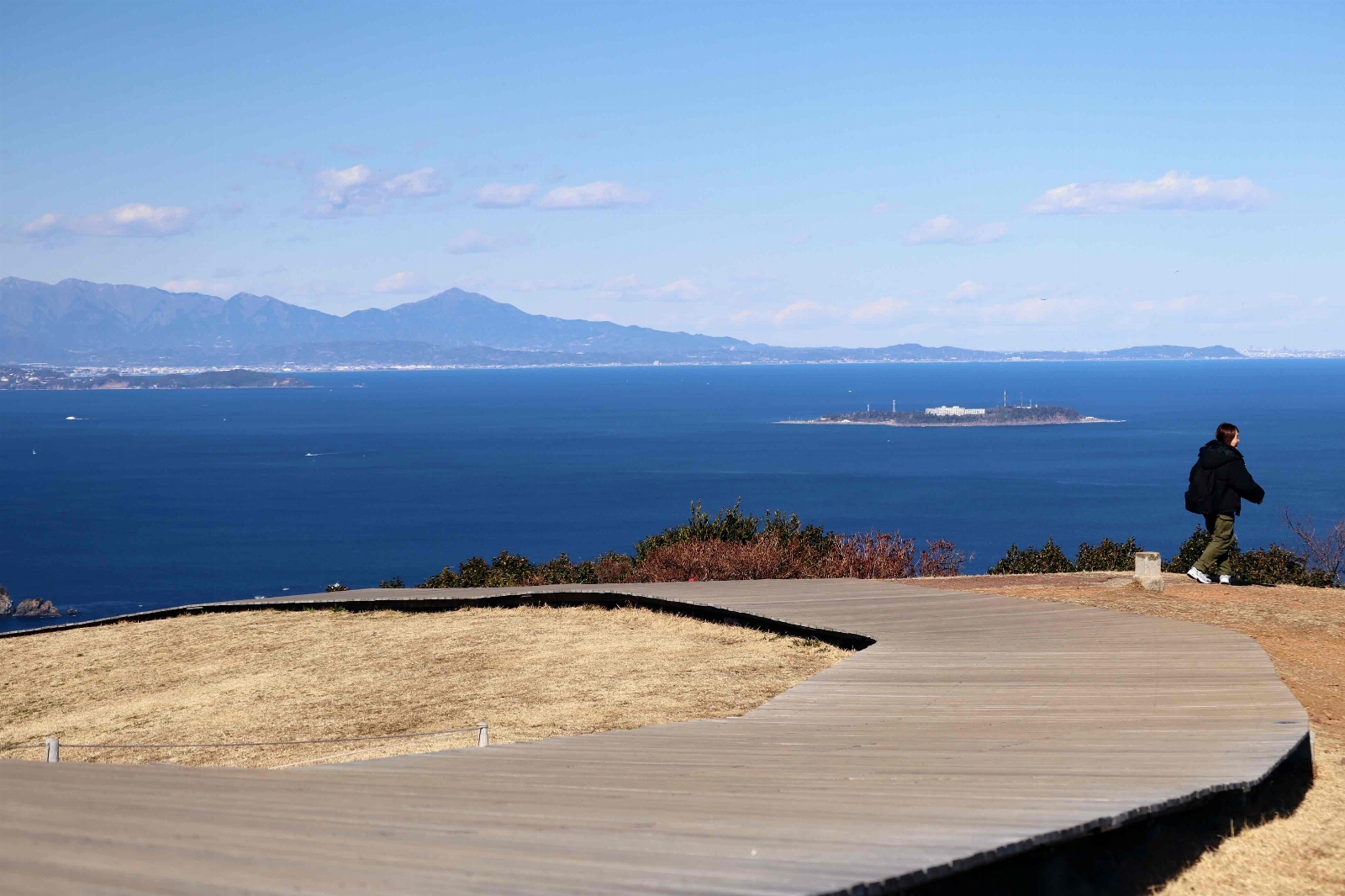 山頂からの眺めは天城山や富士山、相模湾灘や伊豆東部全体を見渡せる“360度パノラマ溶岩台地”が広がる。