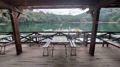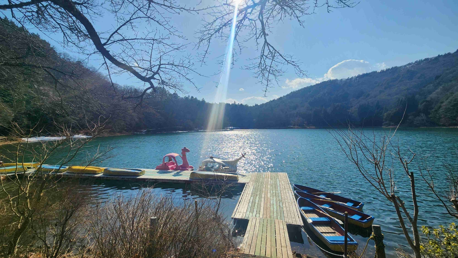標高900mで周囲1.2kmの山上湖。四季折々に違う顔を見せてくれる、アート作品のような場所。まん丸い形が印象的。
