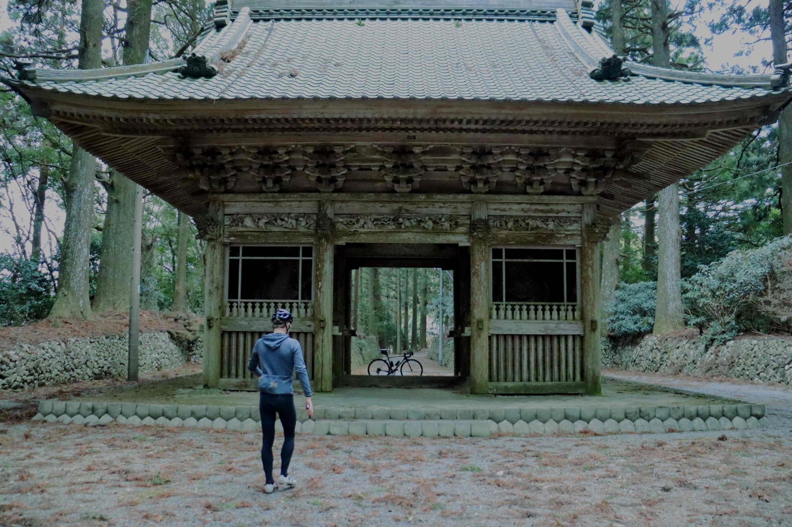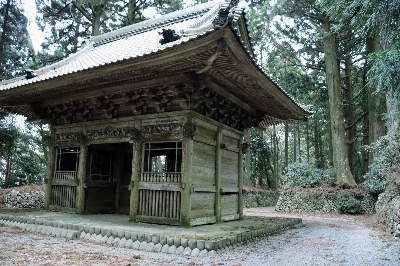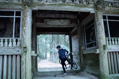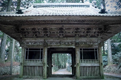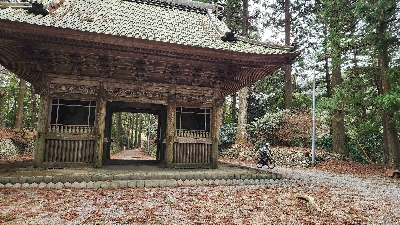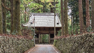 森町の山奥、島田市の境目にある立派な山門。この先更に約500m奥に進むと、景観が開き、金剛院の本堂が現れる。