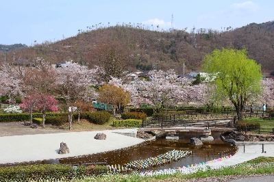 龍門渕公園に隣接するあやめ公園では、毎年6月頃に約3万株の花菖蒲が見頃を迎える。