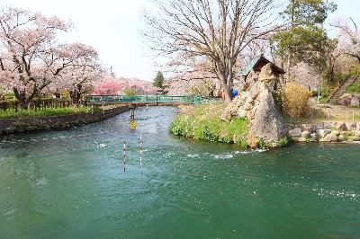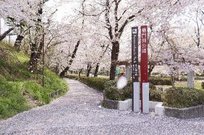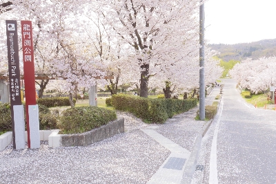 龍門渕公園は明科を流れる犀川に隣接した公園。園内には、トイレ、芝生広場、グラウンド、テニスコート、親水エリアがあり、カヌーが盛んに行われている。