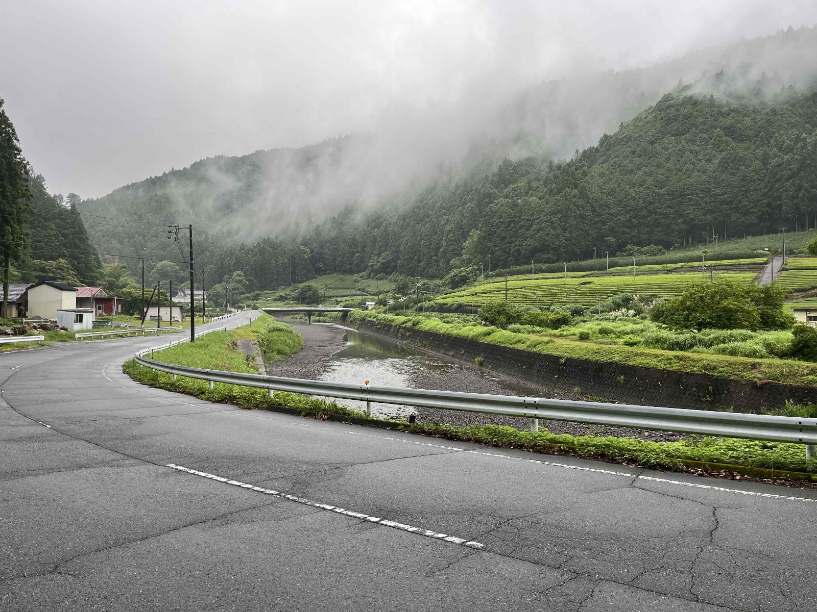 二俣川沿い広がる茶畑。