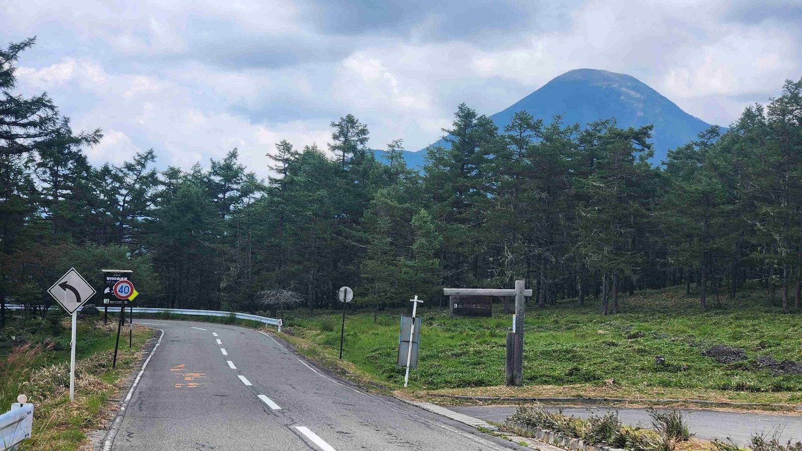 麦草峠の途中にある展望台。空気が澄んでいれば北アルプス、御嶽山、中央アルプス木曽駒ヶ岳、南アルス仙丈ヶ岳、甲斐駒ヶ岳、北岳、鳳凰三山、さらには蓼科山、編笠山など、日本アルプス全体を見渡すことができる。