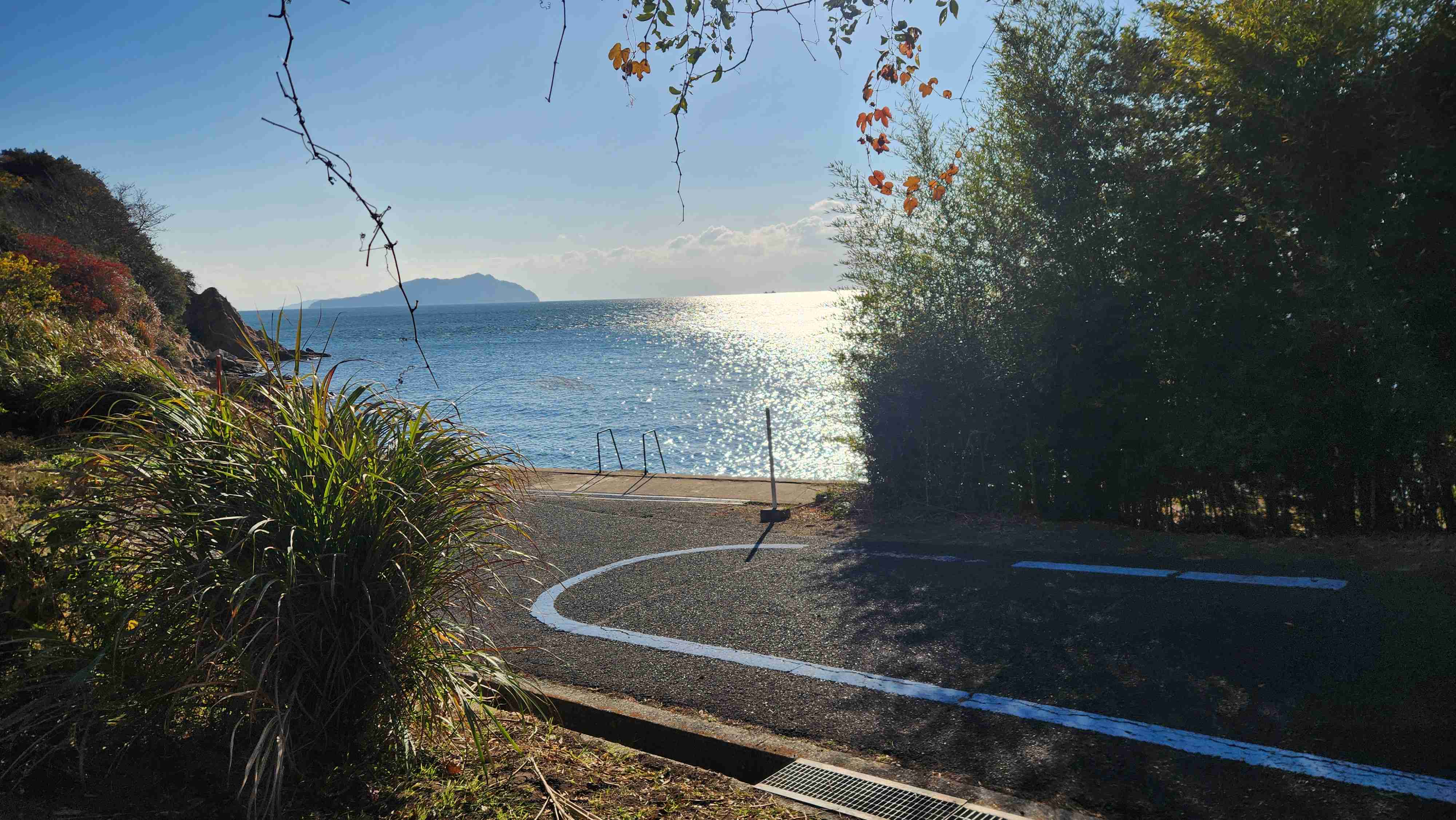 佐島の最南端に向かうブルーラインの終点。海水浴場に至る単なる何もない行き止まりですが、サイクリストの人気な目的地の一つです。
