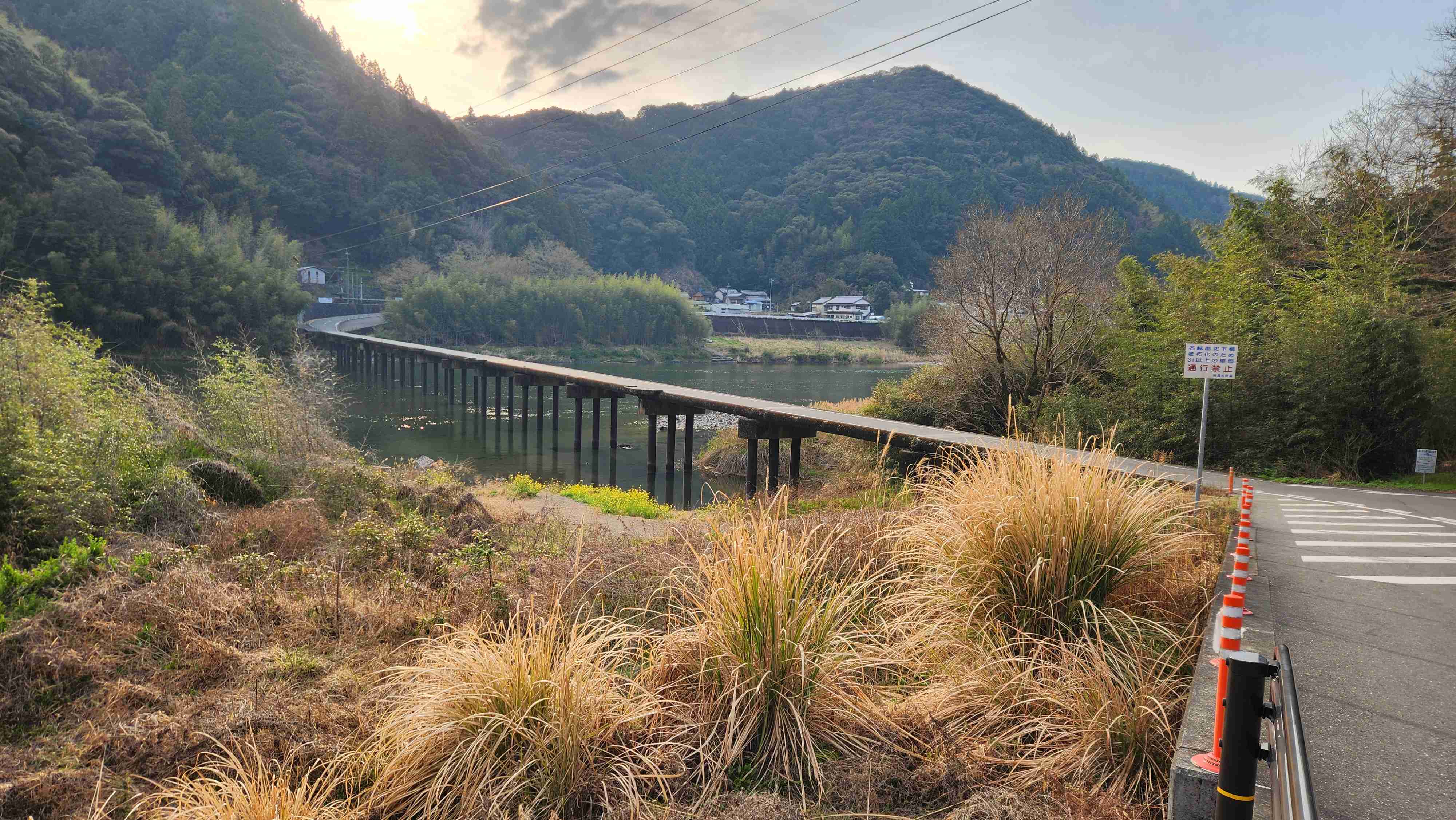 昭和終期に作られた沈下橋。四国に多くあるガードレールのないの沈下橋のひとつ。