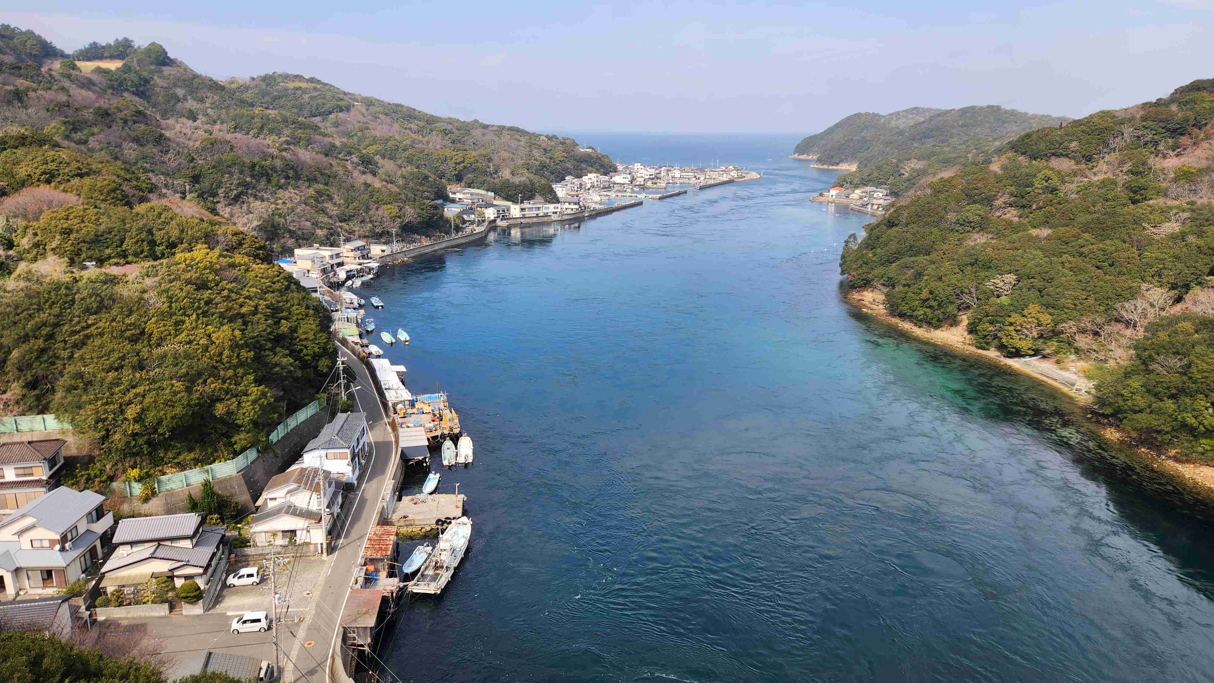 小鳴門海峡に架かる赤い橋。ここから見える北泊の港町が海に浮いて見える。