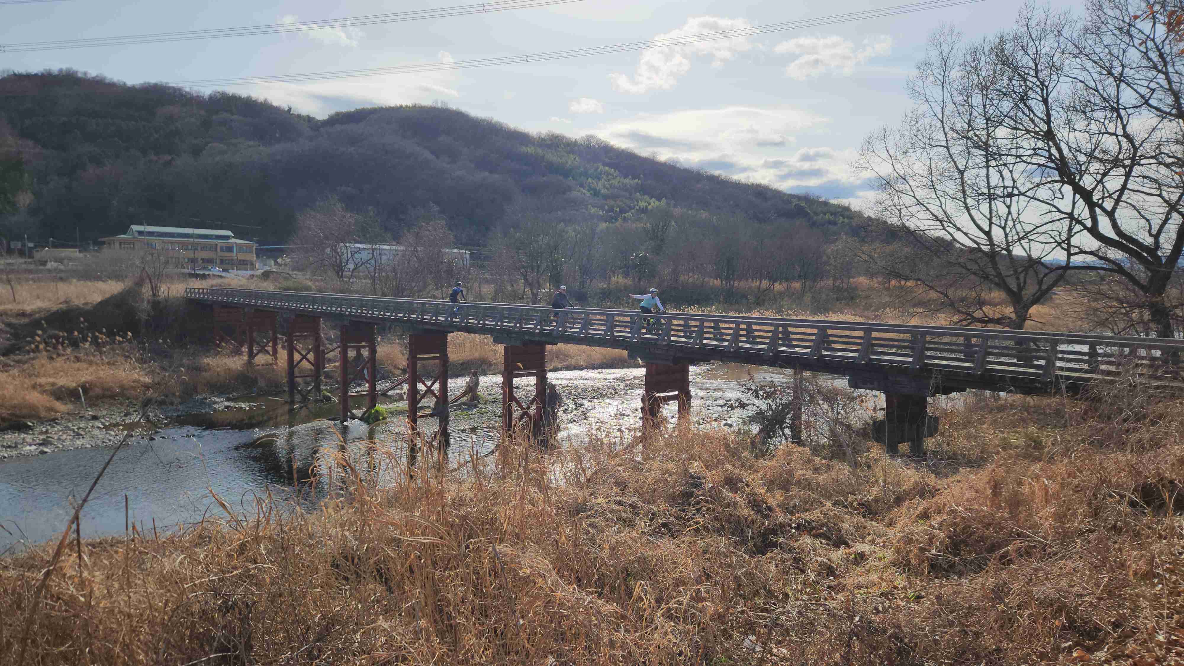 橋桁が木製で風情ある造り。