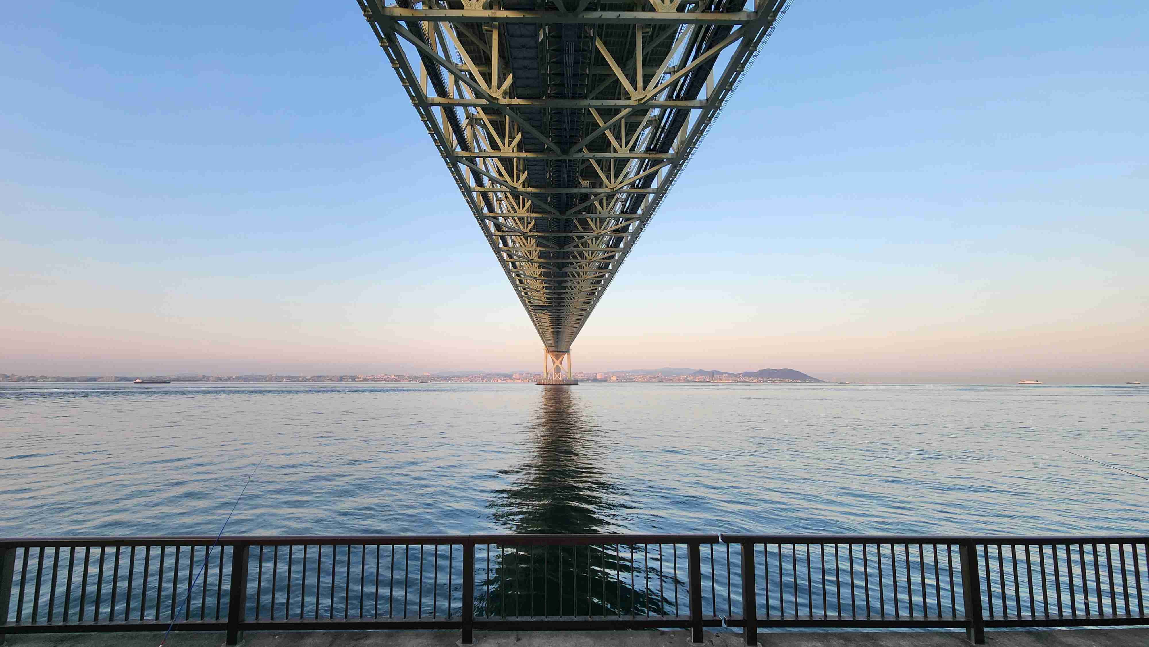 道の駅の裏には明石海峡大橋の真下に位置する公園と遊歩道があり、釣り人に人気なスポットになっている。
