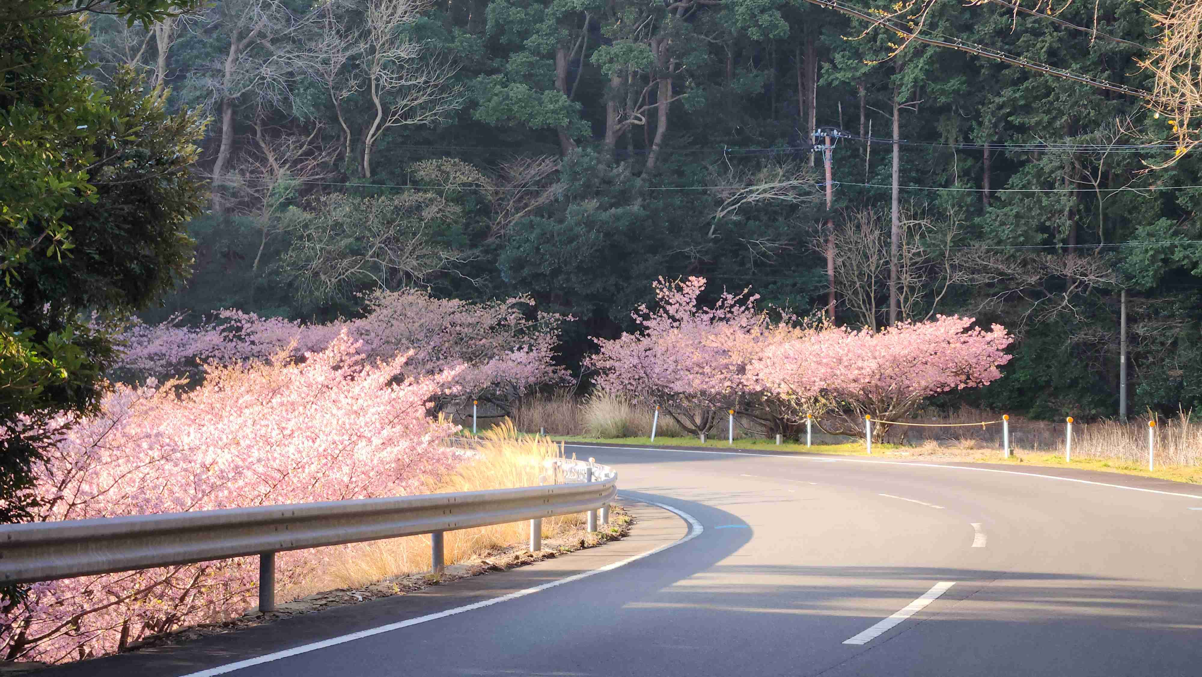 駿河湾と富士山を背景に楽しめる早咲きの河津桜。マイナースポットではありながらそれなりの規模となっている。見頃は2月下旬から3月上旬にかけて。