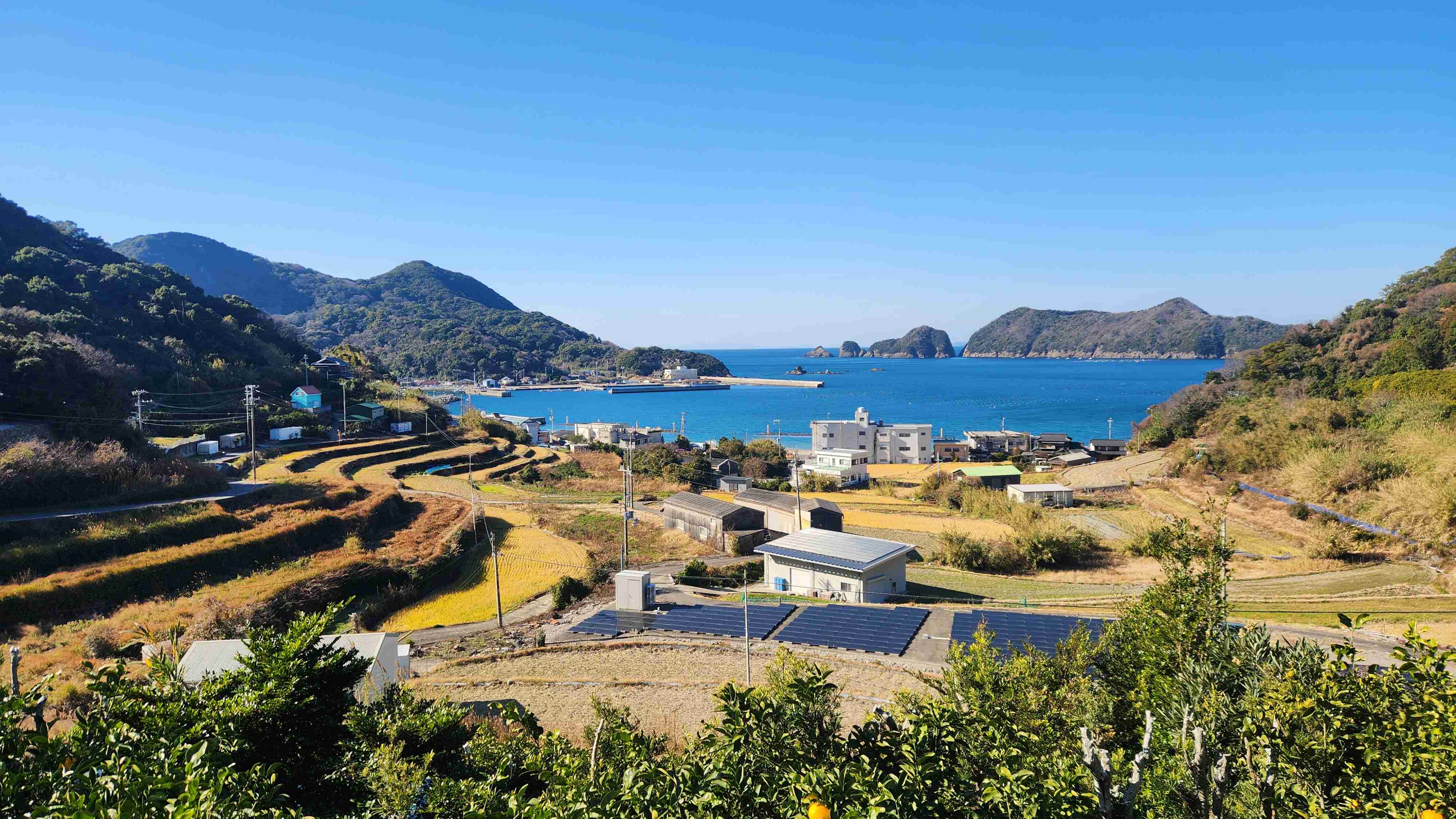 静かな湾に面する小さな棚田。海とのコラボが真に美しい。