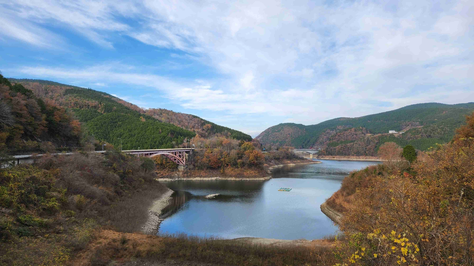 恵那市街と岩村町の中間に位置するダム湖。奥には恵那山まで眺められる。