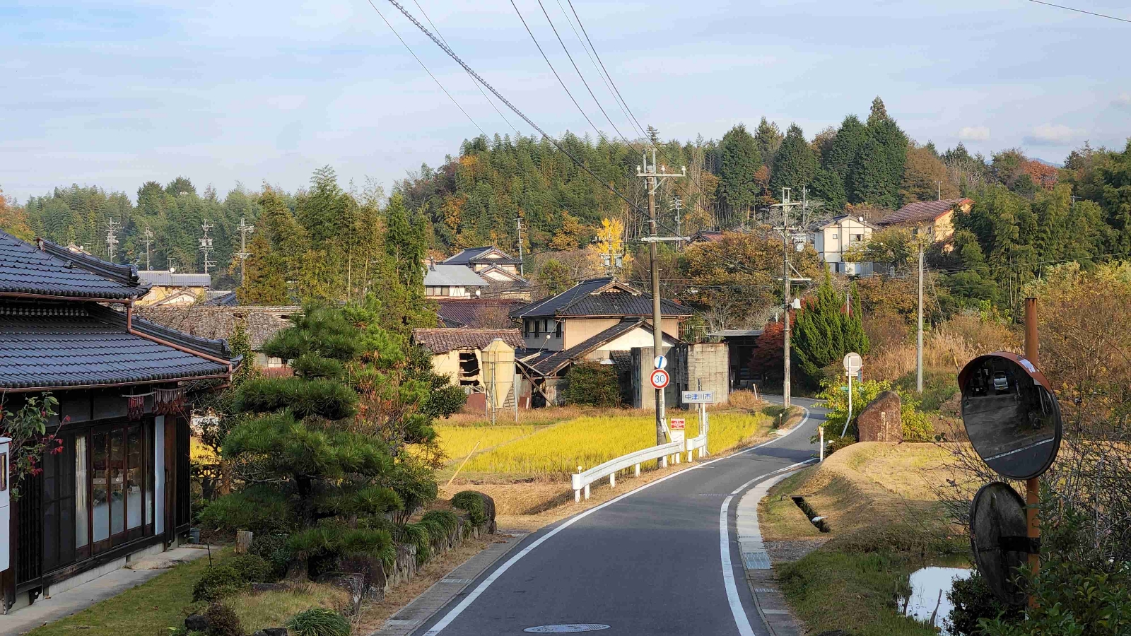 田んぼを通る中山道の落ち着く田舎風景。
