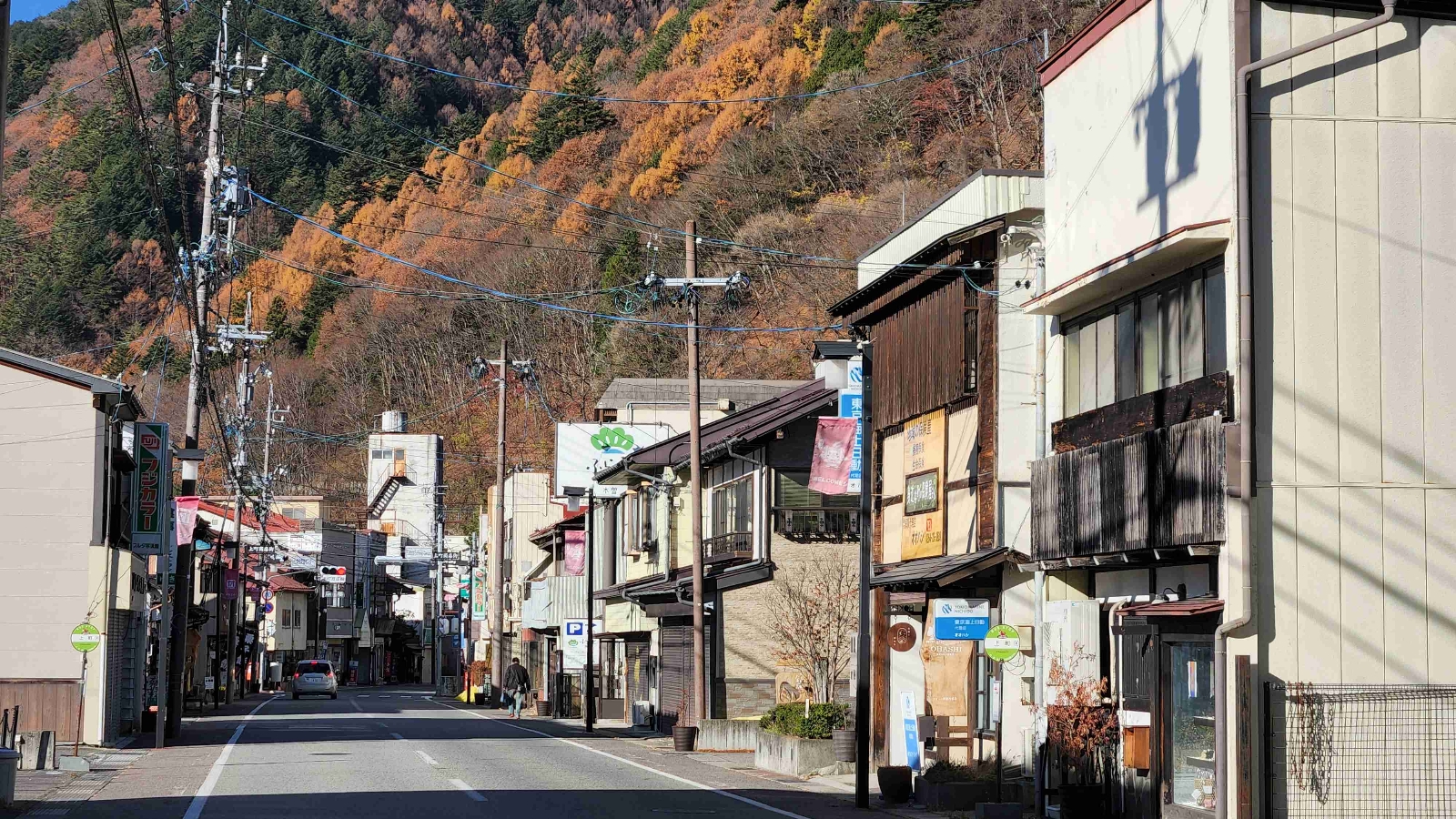 木曽町市街の街並み。商店街の裏には歴史のある建物が多く残されている。