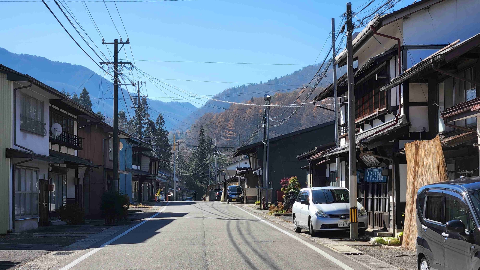 中山道の奈良井川沿いにある宿場町。静かで懐かしさを感じる風景。