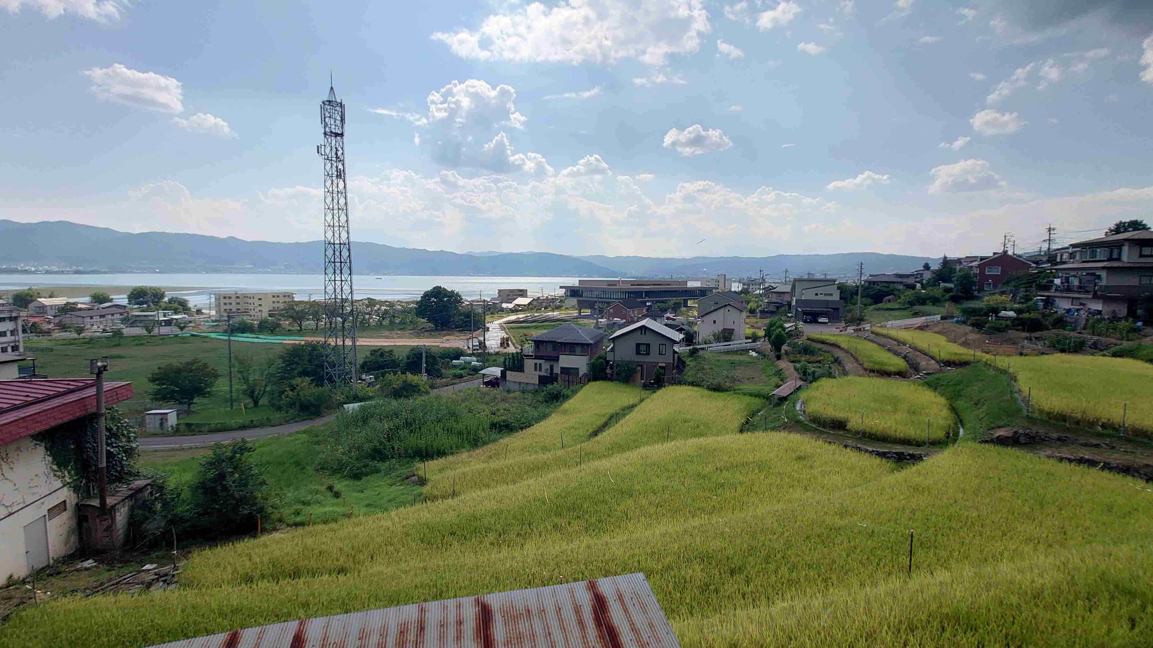 棚田と諏訪湖の絶景が楽しめる撮影スポット。