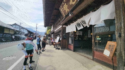 七賢を作っている、山梨銘醸株式会社の工場と水信玄餅で有名な金精軒がある宿場町。今でも往時を偲ばせる家並や屋号が残っている