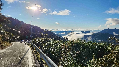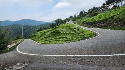 勾配がもっともきつい場所は、九十九折でお茶畑の中を登っていく。天気のいい日は海まで眺められて、静岡感溢れる真の絶景。