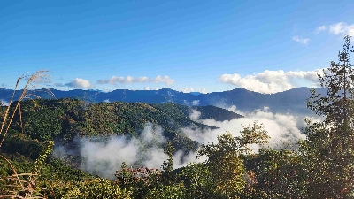 峠の頂上にポツンとある道の駅から、奥静岡の山々と、その上に薄っすらと富士山まで一望できる。