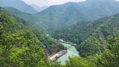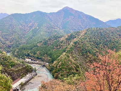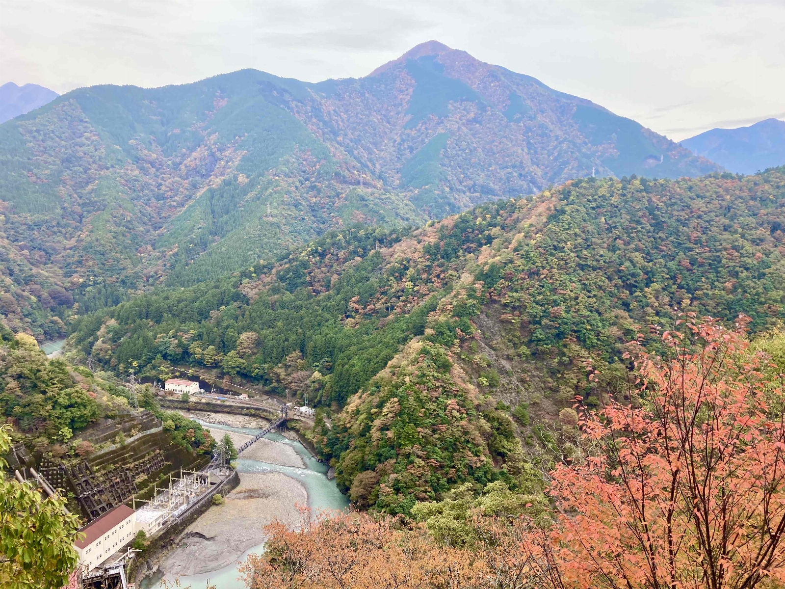 峠付近では、大井川ダムを囲む周辺の山々を一望できる。