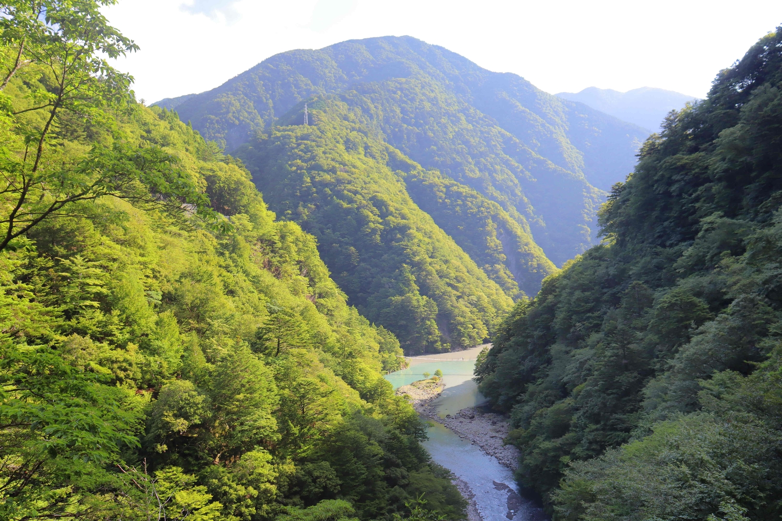 エメラルドグリーンの川を渡る有名な吊り橋。新緑と紅葉の季節は特に美しく、並ぶことも多い。
