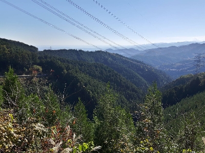 房総半島まで見渡せる見晴らしポイント。梅ノ木峠に向かう林道大入線は中々の勾配で上級者向けだが、頂上からの眺めは最高。
