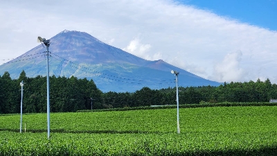 富士山と茶畑の景色が楽しめる撮影スポットのひとつ。