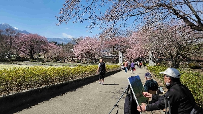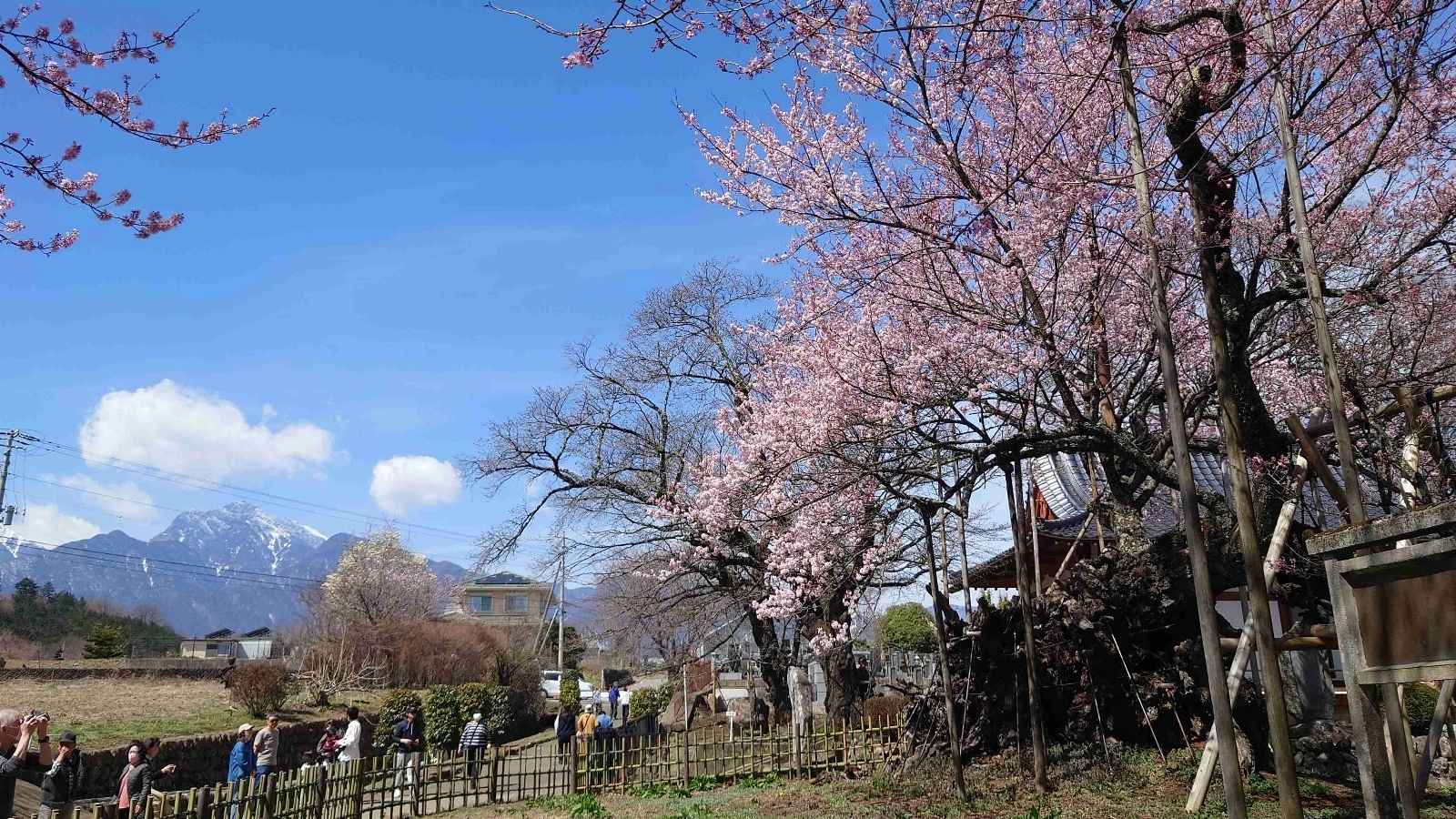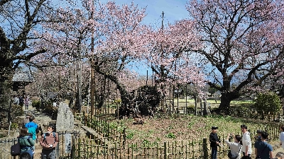 「神代桜」を含める様々な歴史のある桜の木と、一面のチューリップ畑が咲き誇るお寺。4月上旬は大勢の観客で賑わう。