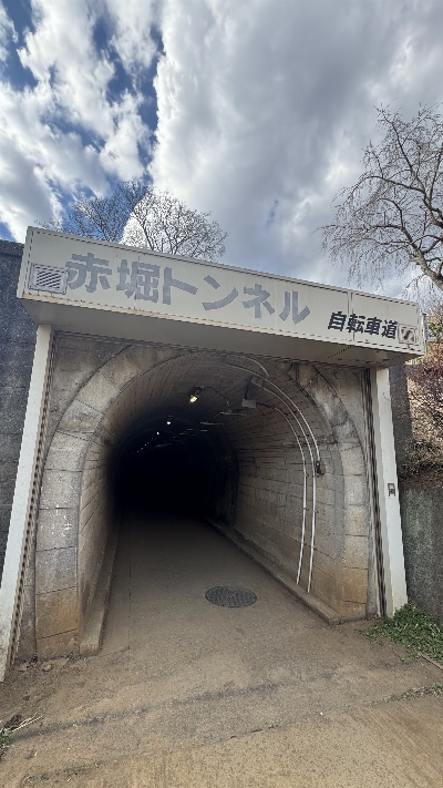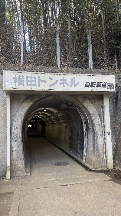 野山北公園自転車道に続く最初のトンネル。軽便鉄道が通っていたときは第六隧道まであった中の「一号隧道」と呼ばれていた。ひんやりとして廃線跡のトンネルというムードがある。