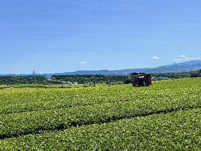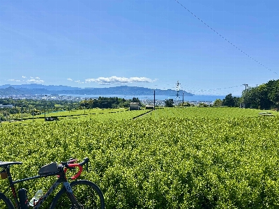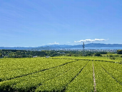 愛鷹山の中腹にある絶景スポット。斜面から茶畑と駿河湾を一望できる。