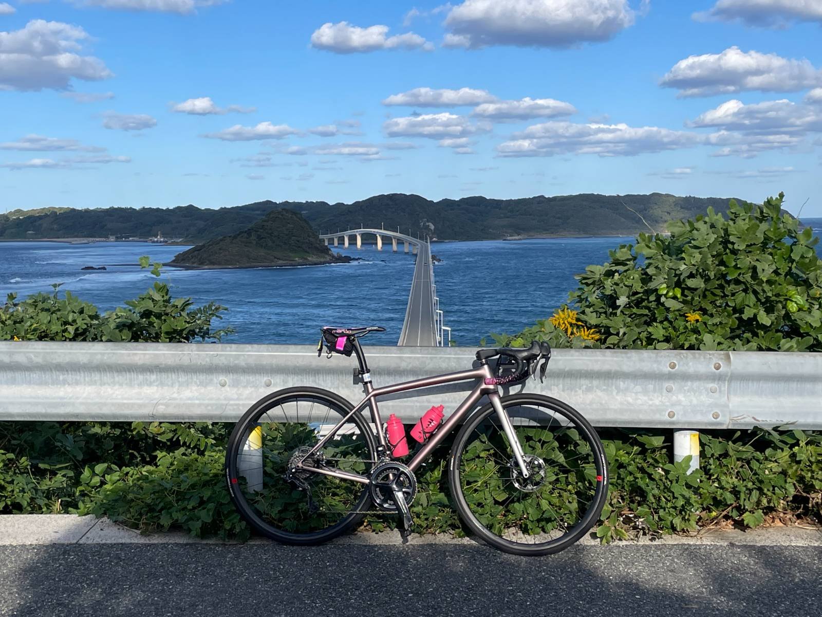 本州と角島を結ぶ橋。1本逸れた高台からの景色が綺麗だが、地元住民の迷惑にならないように(たびたび苦情が寄せられている)。