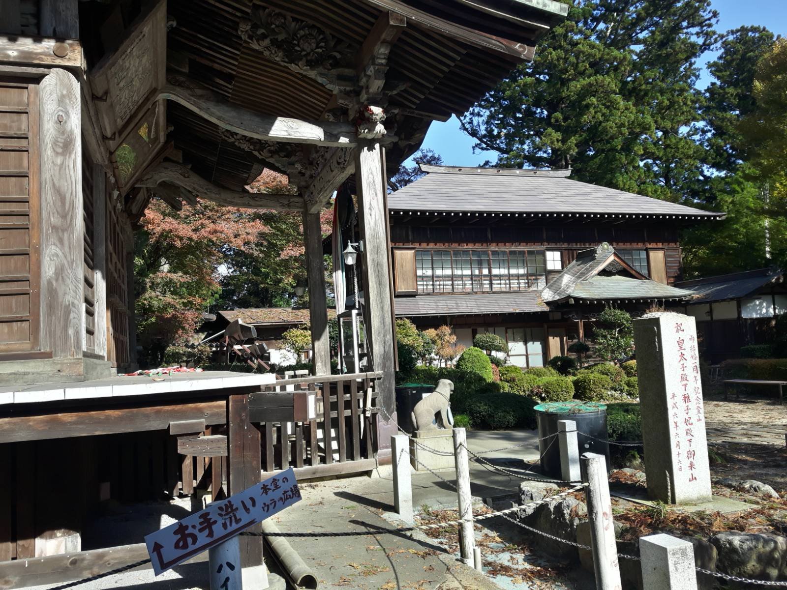 山のてっぺんにある立派なお寺。成木から続く登り道は景色が良いが、状態が良いとはいえ、大半が未舗装路で距離もある。