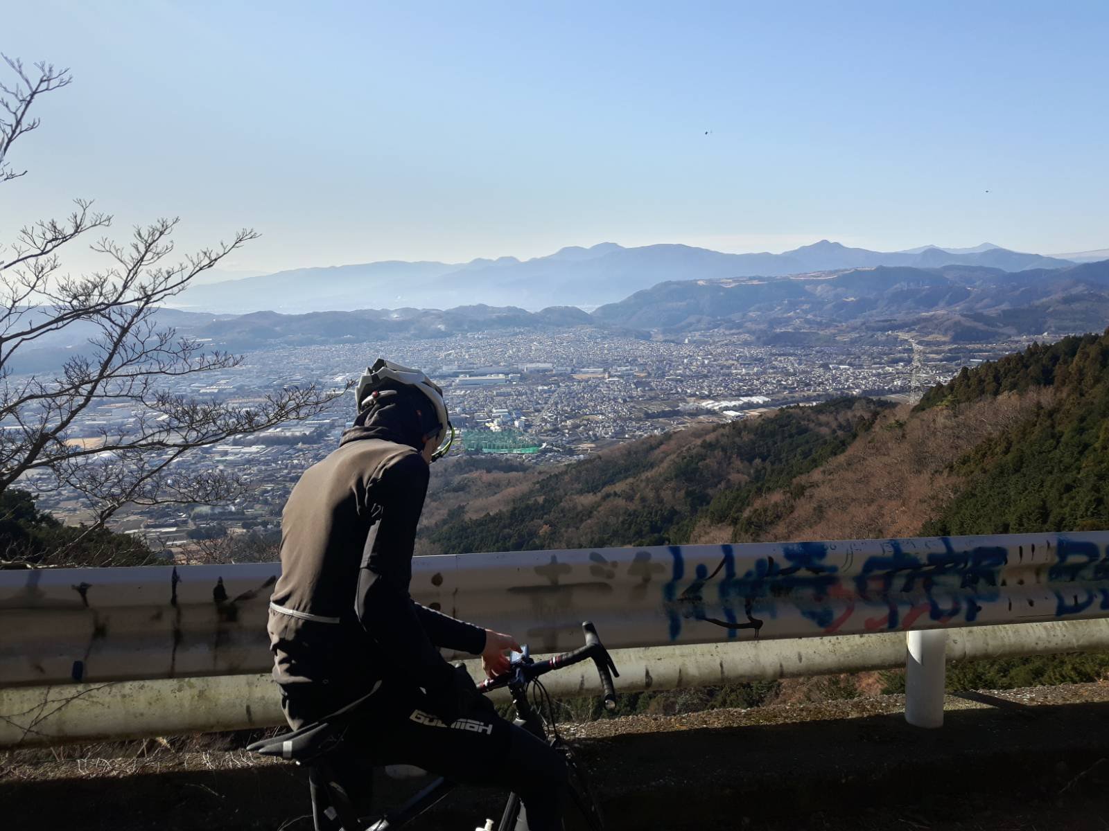 登りの途中で、秦野の街並み、そして相模湾と箱根が一望できるスポット。