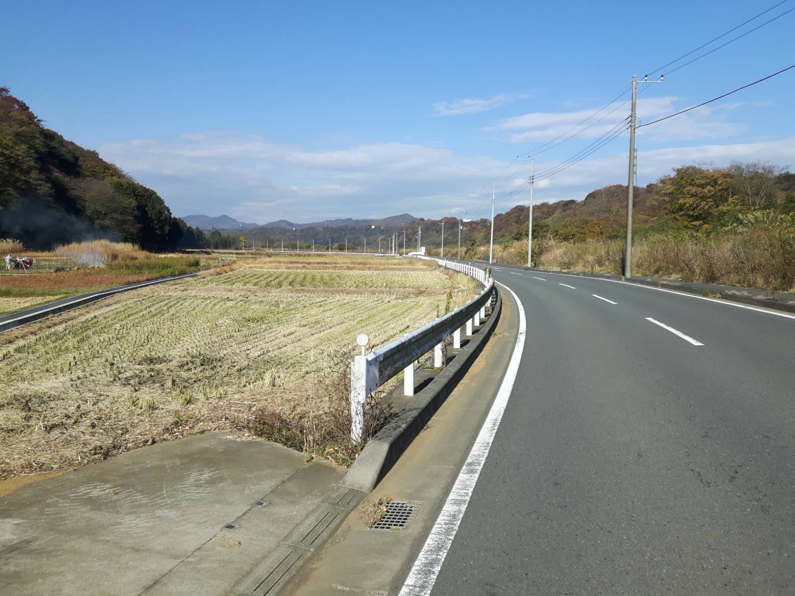 中津川と田んぼに挟まれる静かな県道。