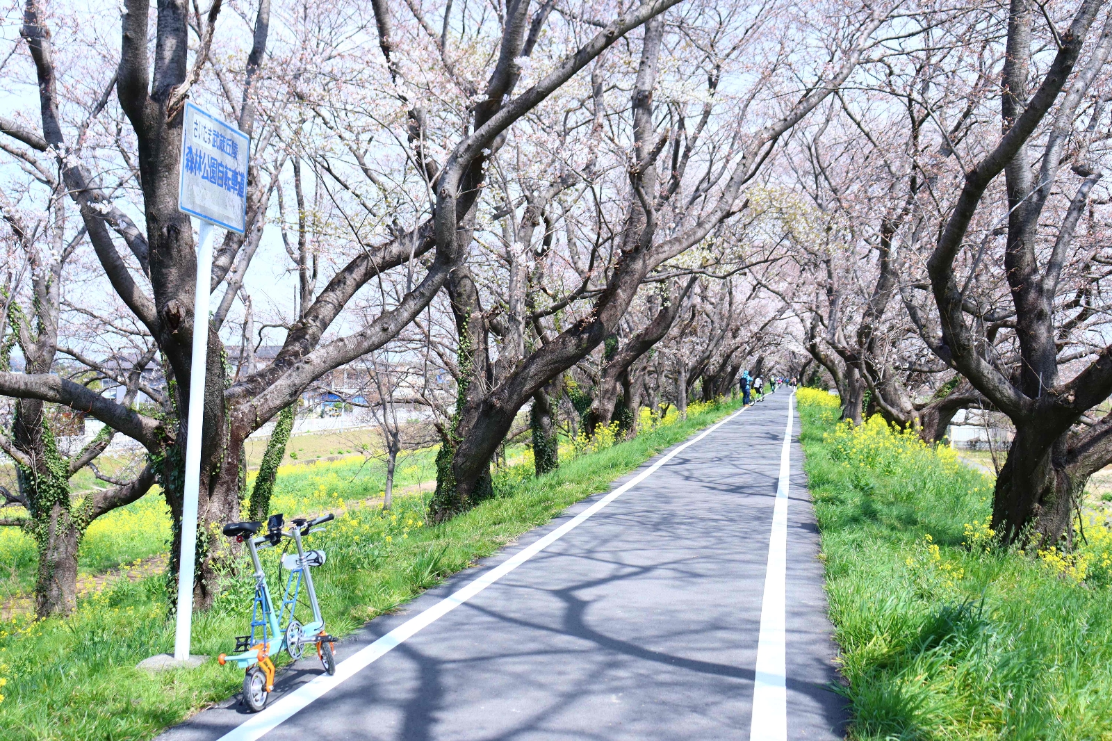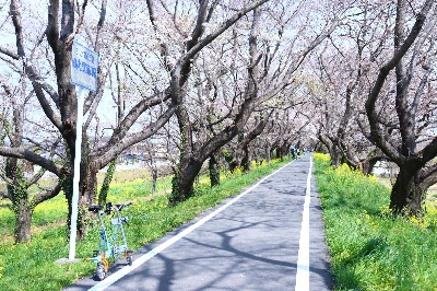 荒川サイクリングロードの途中にある桜のトンネル。一般道よりも幅が狭いため、トンネル感が半端ない。また、サイクリングロード付近の公園も有名な花見スポット。3月下旬に必ず訪れたいところ。