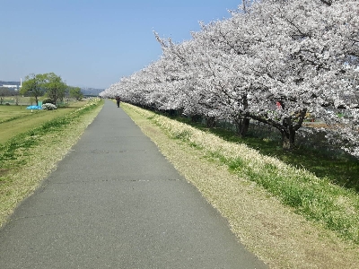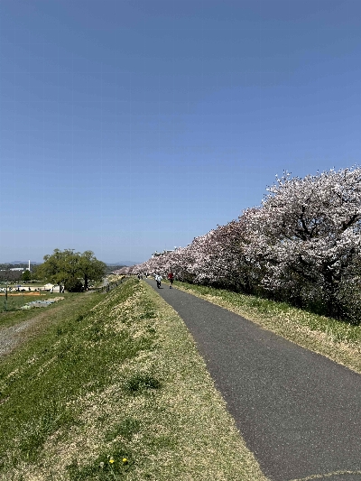サイクリングロード沿いに、約800mに渡る直線の桜並木。