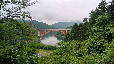 林道の入り口から見える宮ケ瀬虹の大橋。舗装路から眺めたいのであればここ一択。
