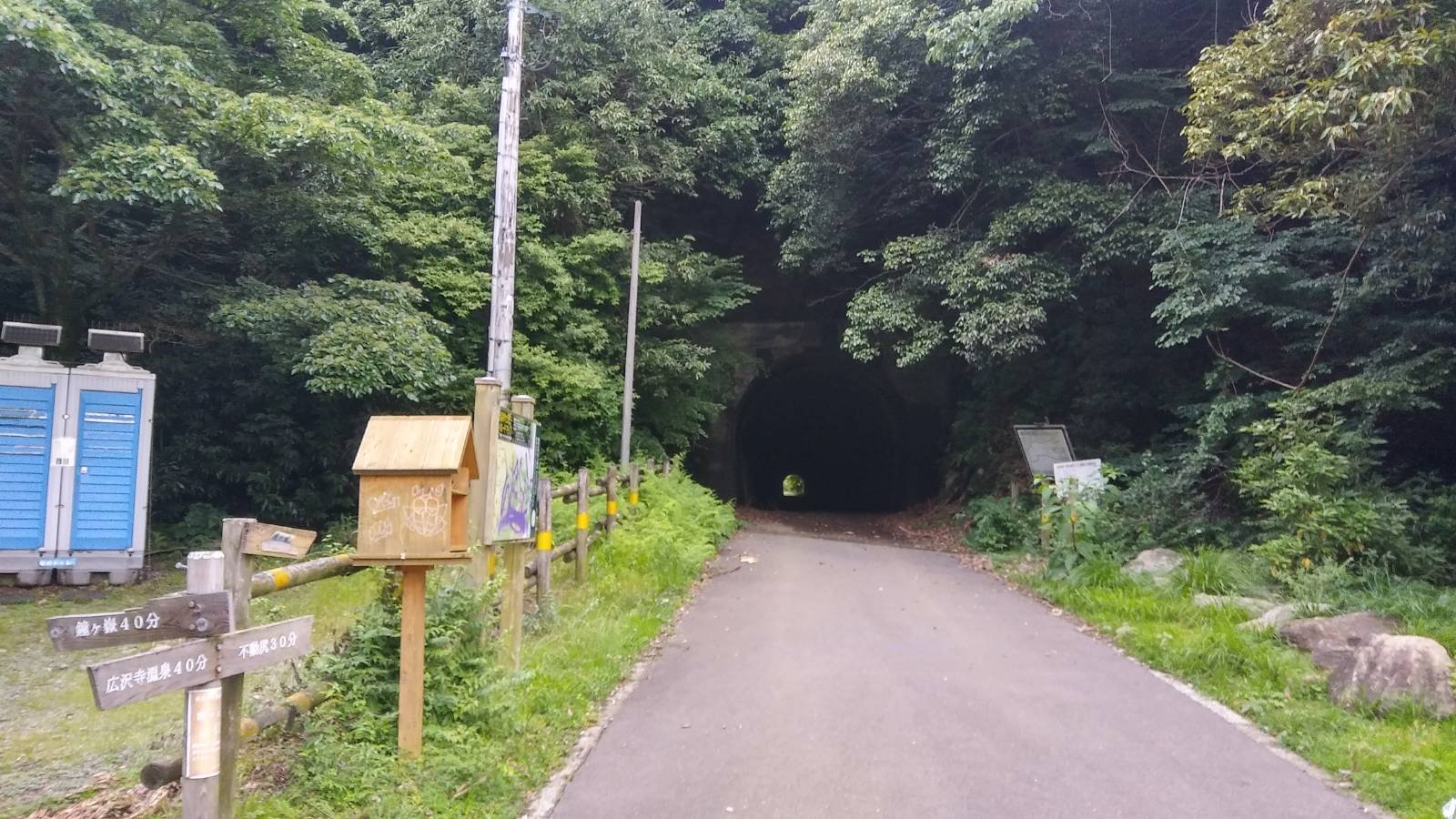 車では通行できないトンネル。この先にある二の足林道は、しばらく舗装は続くが、険しさそのもの。