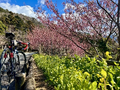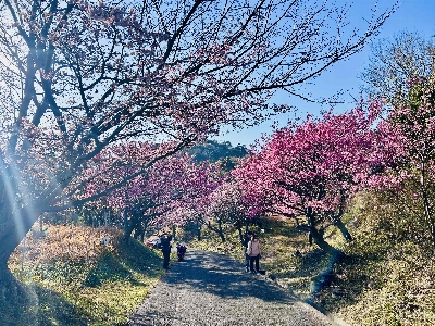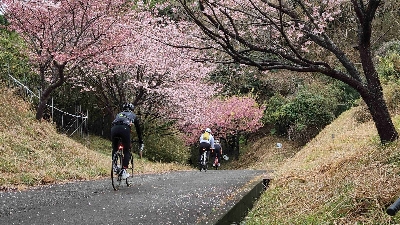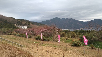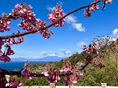 富士山を眺める展望台があり、この先に進むと、崎まで約10分のウォーキングコースが整備されている。1月下旬になると、早咲きの土肥桜並木と菜の花が楽しめる。