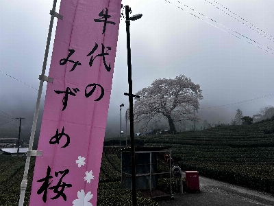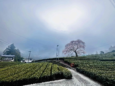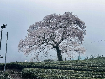 茶畑の中にある美しい一本桜。桜の咲く時期になると、ライトアップされる。