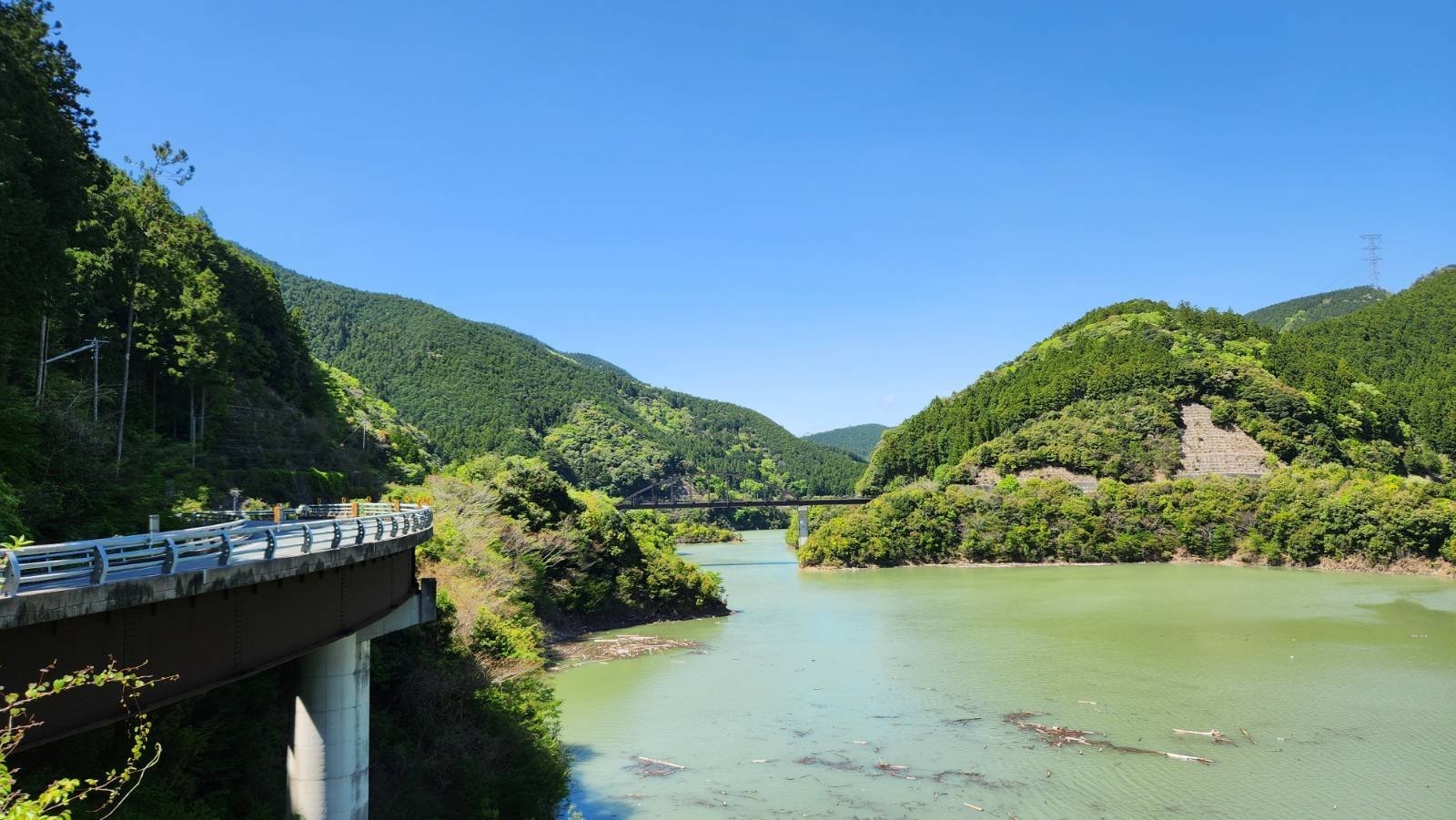太田川の上流にある山の中の小さなダム湖。道路が広い割には交通量が少ない。
